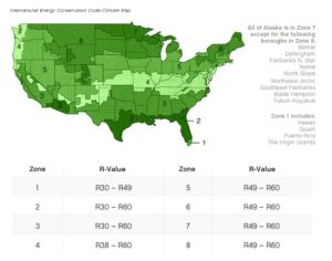 - First, use this handy-dandy map to determine the R-value recommended for your region. R-value indicates insulating power or thermal resistance (chart below).